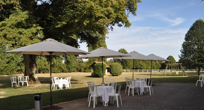 Tables rondes, chaises confortables et autres accessoires d'extérieur sont à votre disposition tout le long de votre mariage