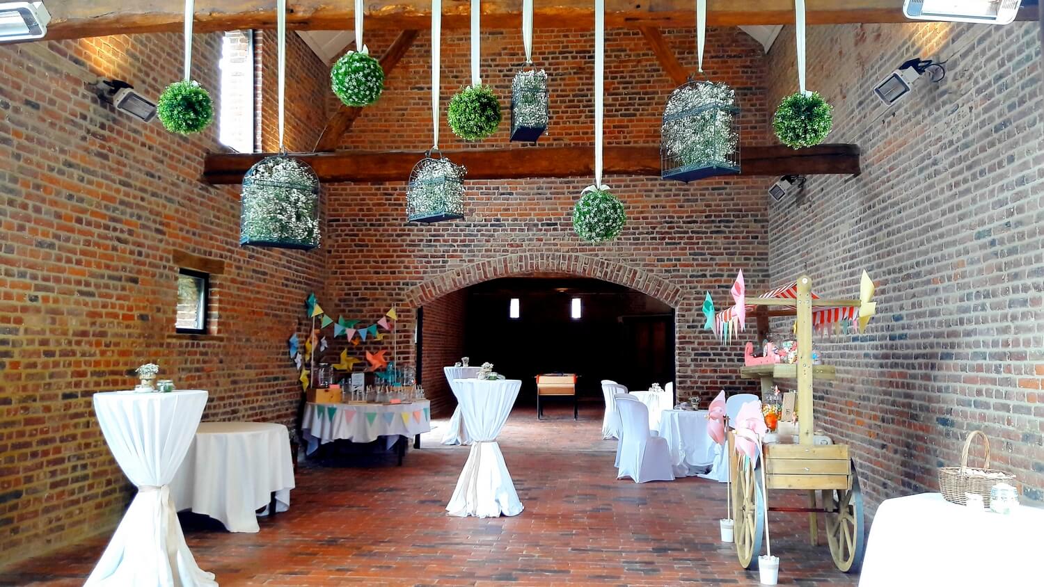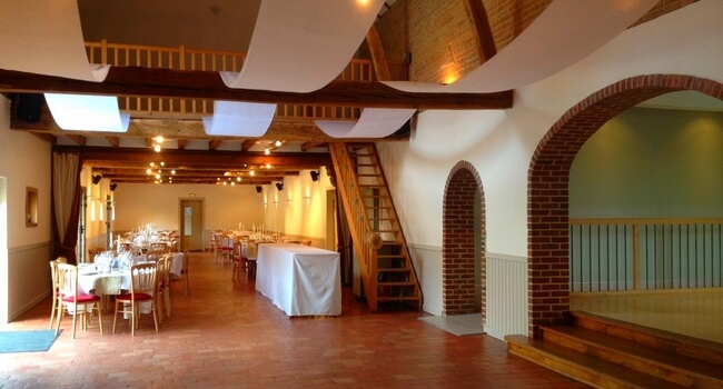 Cette grange avec sa charpente en bois traditionnelle et son pourtour en briques anciennes laissera vos invités admirer la vue sur le soleil couchant. Piste de danse pour votre soirée.