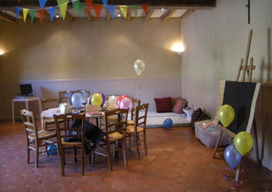 Ce salon légèrement en retrait à côté du hall permet d'installer un espace de jeux et un dortoir pour les enfants.